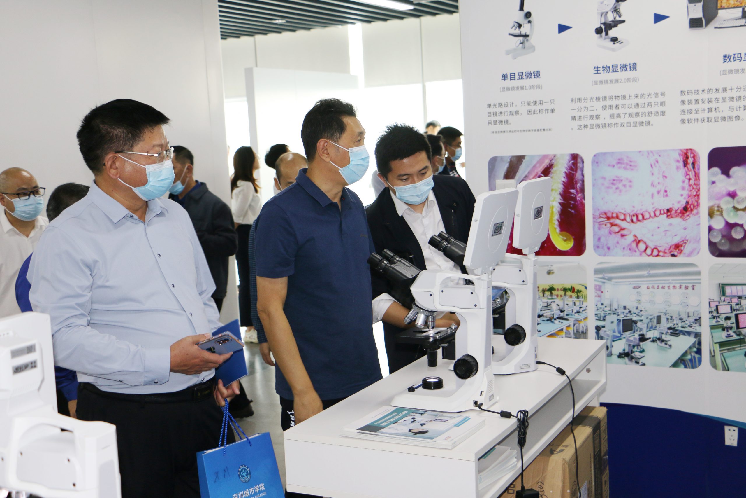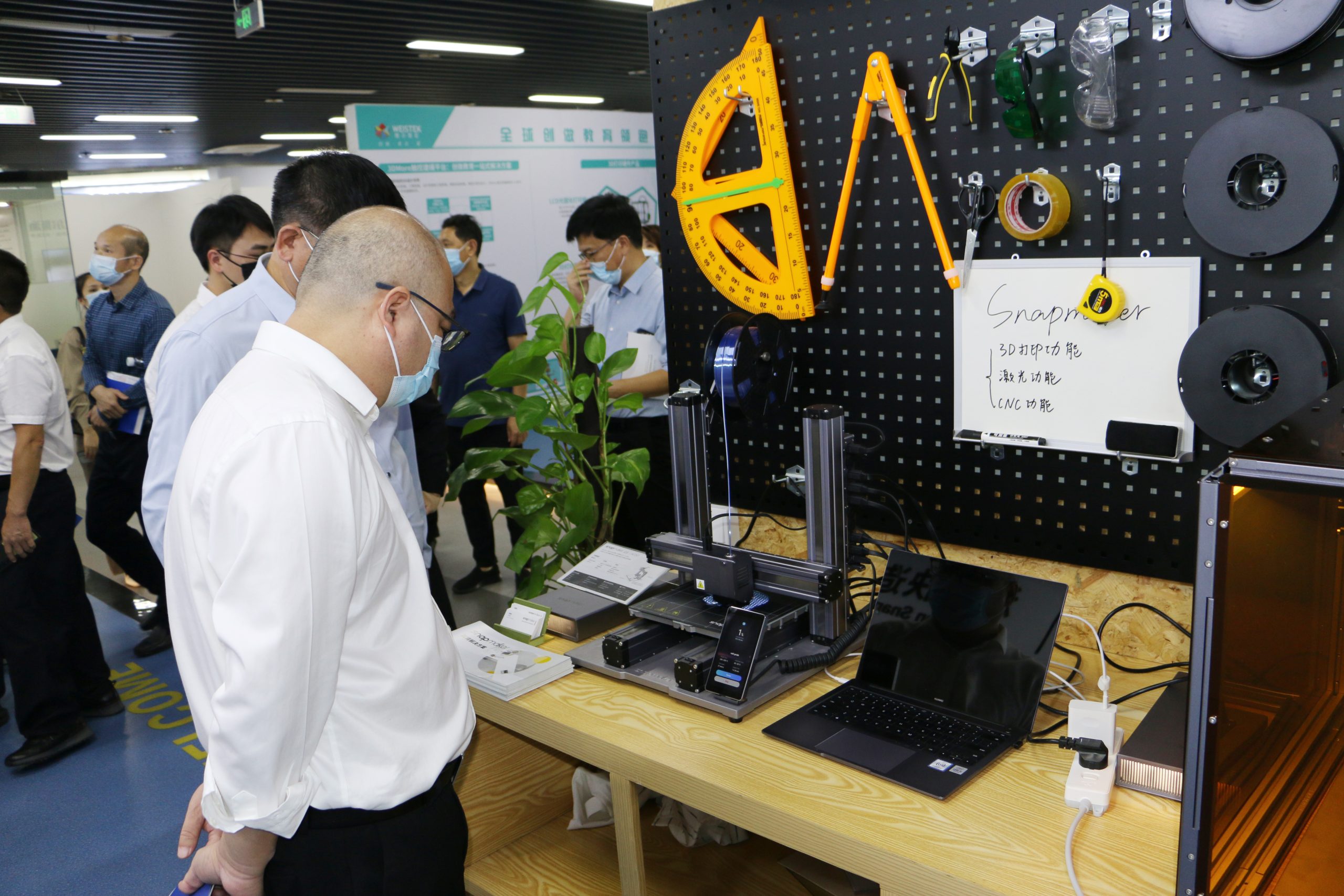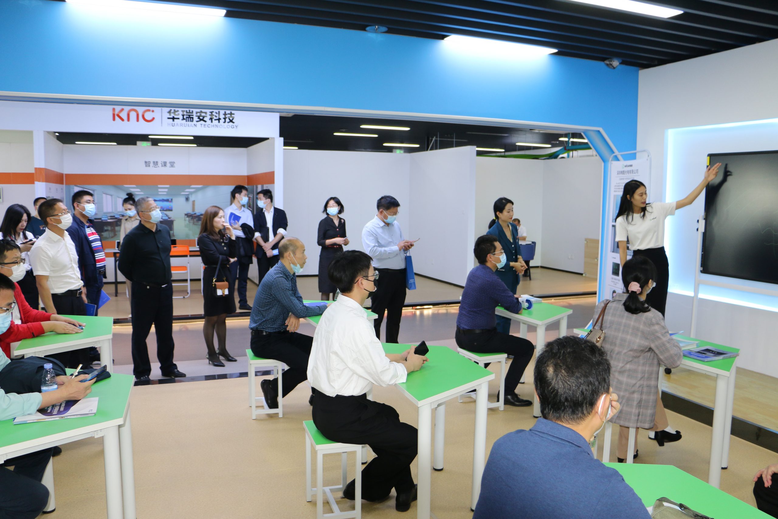 在展廳內,校長和老師仔細了解EBC空氣環境機、有道大數據精準教學方案,觀看智能教育裝備宣傳視頻,體驗智慧教室設備,對各類先進教育裝備產品愛不釋手;經過遠望谷智慧圖書館,翻閱各類圖書,感受現代化圖書館的創新成果;校長和老師觀看西安樂博士機器人、愛科學數碼液晶顯微鏡、體驗快造3D打印技術、聆聽智慧健康校園解決方案等。大灣區教裝中心琳瑯滿目的黑科技與豐碩的建設成果給各位研究班老師們留下了深刻印象。當天有云蝶、華為、網易有道、共升、談校風生、冠標、科大訊飛、艾博德、立人集團、唐仁智控科技、光之力、艾爾斯派、唯酷、愛科學、豪威、英之泰教育、學海密探、快造科技、凱衛仕、西安樂博士機器人等數十家企業參展。